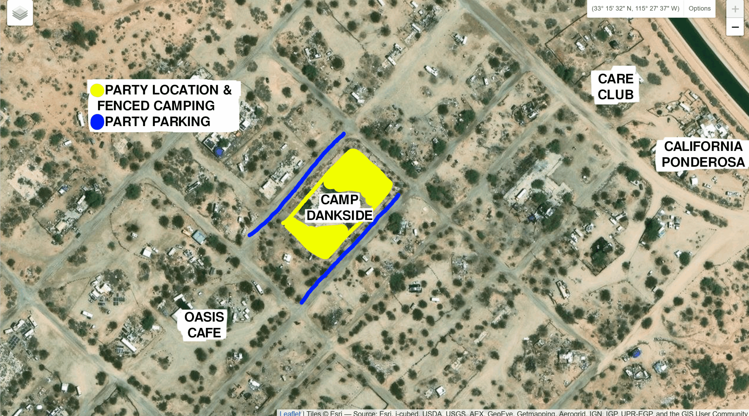 - There is free tent camping within the fence line of Camp Dankside, we have an outhouse and a water tank for the event. Cars/RVs/busses/etc. must be parked outside the fence line.